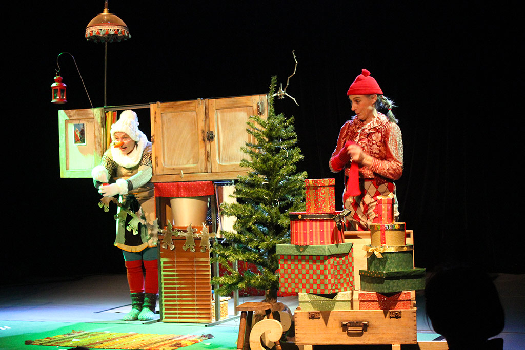 Deux lutins malicieux entraînent petits et grands dans une aventure féerique au cœur de la forêt enneigée. Pris dans la tempête, le Père Noël compte sur eux — et sur les enfants — pour sauver la grande tournée du réveillon ! Guidés par le son de l’accordéon, les comédiennes deviennent conteuses, chanteuses et musiciennes, faisant vivre un univers où la poésie se mêle à l’humour et à la magie.